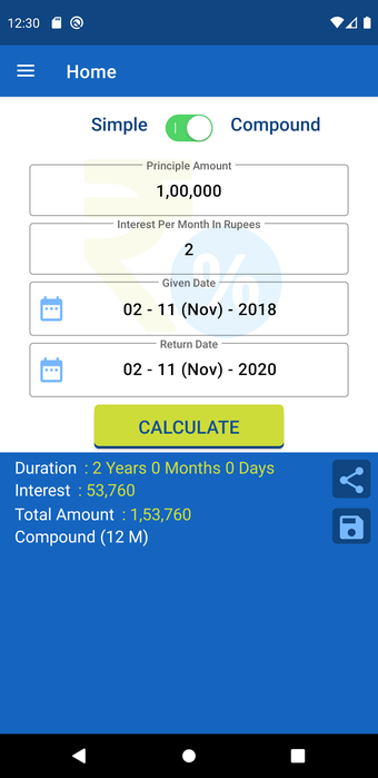 แอปพลิเคชันนี้มีให้บริการในภาษาอังกฤษ, తెలుగు, தமிழ், हिंदी, ಕನ್ನಡ, และ മലയാളം ทำให้สามารถใช้งานได้กับกลุ่มผู้ใช้ที่หลากหลายมากขึ้น ผู้ใช้งานสามารถสลับการคำนวณดอกเบี้ยแบบง่ายและดอกเบี้ยทบต้นได้ง่ายดายและแอปพลิเคชันนี้ง่ายต่อการนำทาง แม้ว่าจะเป็นผู้เริ่มต้นก็สามารถใช้งานได้อย่างง่ายดาย แอปพลิเคชันนี้ไม่ต้องการการเชื่อมต่ออินเทอร์เน็ตและมีขนาดเล็กเบา ทำให้เร็วและมีประสิทธิภาพ แอปพลิเคชันยังมาพร้อมกับข้อความประกาศว่าเป็นเพียงเครื่องมือในการให้คำแนะนำเท่านั้นและผู้พัฒนาไม่รับผิดชอบในกรณีเสียหายหรือการชำระเงินดอกเบี้ยสูงที่อ้างอิงกับการคำนวณที่ทำด้วยแอปพลิเคชันนี้